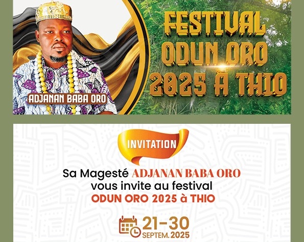 _La commune de Glazoué s’apprête à accueillir l’un des rendez-vous les plus emblématiques de son agenda culturel et cultuel. Du 21 au 30 septembre 2025, la localité de Thio vibrera au rythme du Festival Odun Oro, une célébration unique placée sous le haut patronage et la direction rituelle de Sa Majesté Adjanan Baba Oro, garant des traditions et dépositaire d’un savoir initiatique séculaire._
