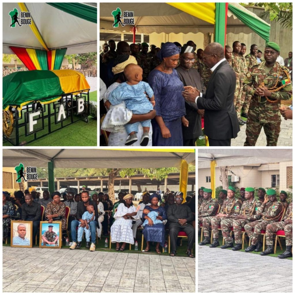 La cérémonie, empreinte d’une dignité toute militaire, a été ponctuée de rites protocolaires, de sonneries réglementaires et de moments de silence, traduisant la reconnaissance de la Nation envers l’un de ses fils tombé pour la défense de l’ordre constitutionnel. À travers cet hommage solennel, l’État béninois a tenu à saluer le courage, la loyauté et l’abnégation d’un soldat dont le sacrifice restera gravé dans la mémoire collective. Le quartier-maître DOTOU Jean-Baptiste laisse derrière lui une veuve, deux enfants, une famille éprouvée, mais aussi une Nation profondément attristée, fière et reconnaissante. Son nom rejoint désormais la longue liste de ceux qui, au prix de leur vie, ont contribué à préserver la paix, la sécurité et la continuité de l’État.