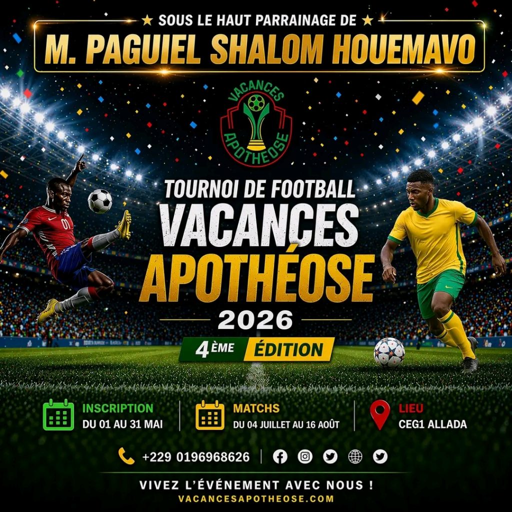 Tournoi de football Vacances Apothéose 4ᵉ édition:Les inscriptions ouvertes du 1er au 31 mai 2026 sous le parrainage de Paguiel Shalom Houémavo